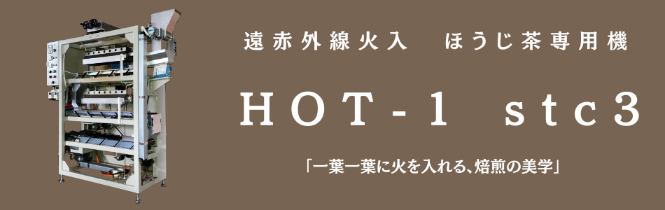 HOT-1は、茶葉一葉一葉に均一な熱を与え、甘みと香りを引き出す遠赤外線火入れ機です。