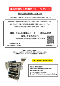 遠赤外線火入れ機「HOT-1 stc3」の展示実演会を京都で開催します。