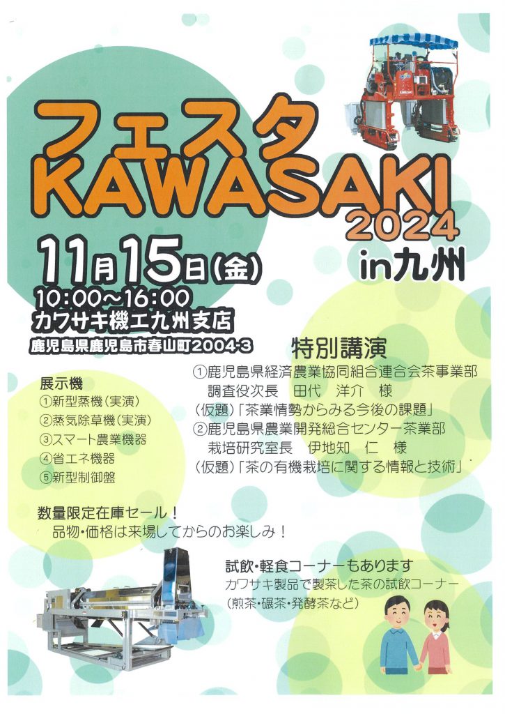 カワサキ機工九州支店様の展示会「フェスタKAWASAKI in 九州」に出展します。